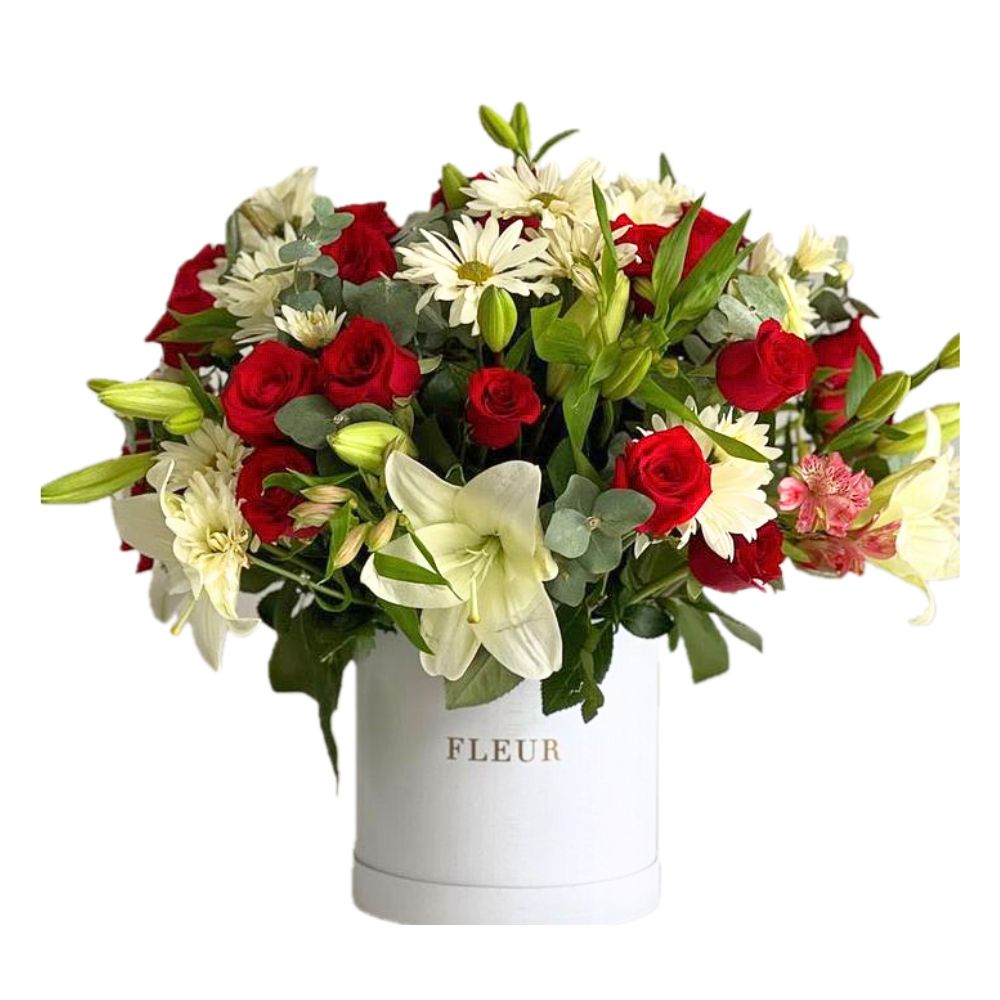 Mix of red and white roses arrangement made special for your lovely one to celebrate