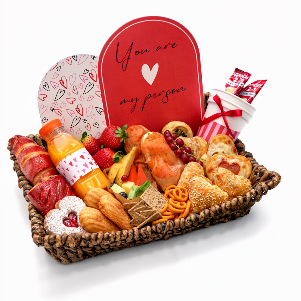 The My Person basket is a premium brunch experience delivered in a rustic woven tray, perfectly balancing gourmet savory bites with sweet artisanal treats. It is designed to be a complete morning surprise for your loved one in Lebanon.